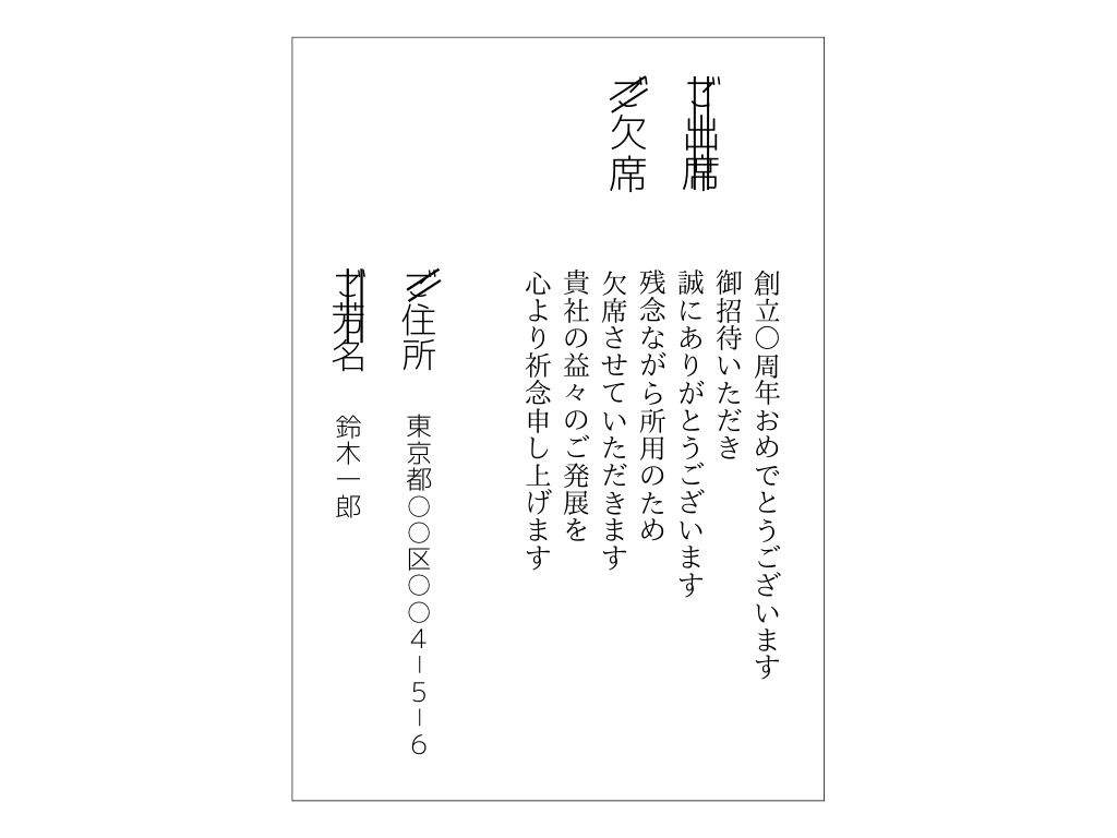 周年・創立記念パーティはお祝い事ですから、出席・欠席に関わらず、返信にはお祝いのメッセージを添えましょう。