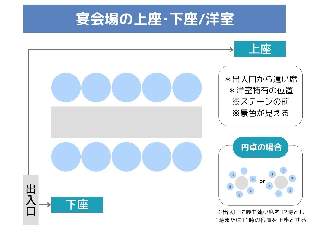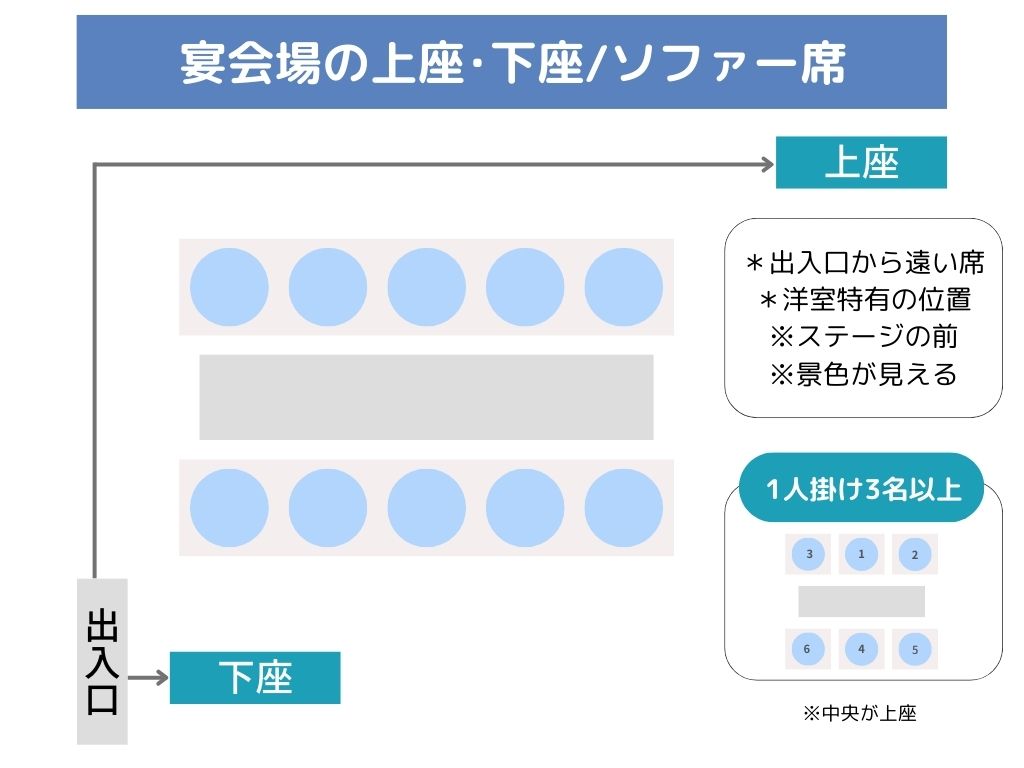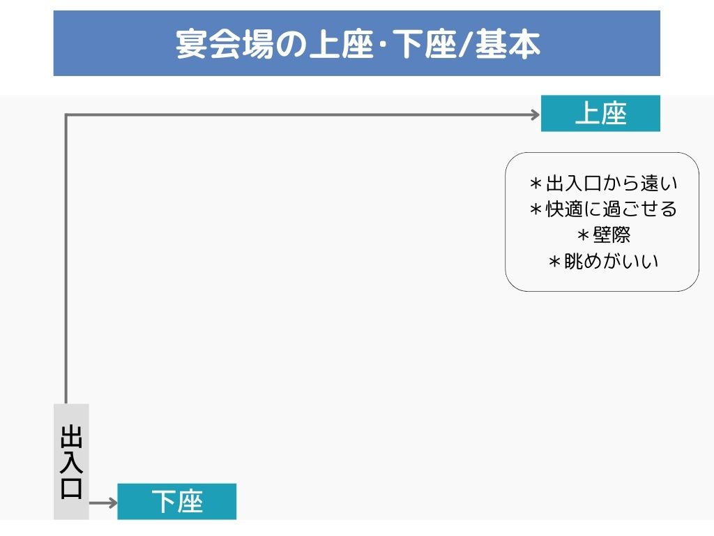 この記事では、宴会場のタイプ別に上座・下座の見極め方を図解で分かりやすく解説。