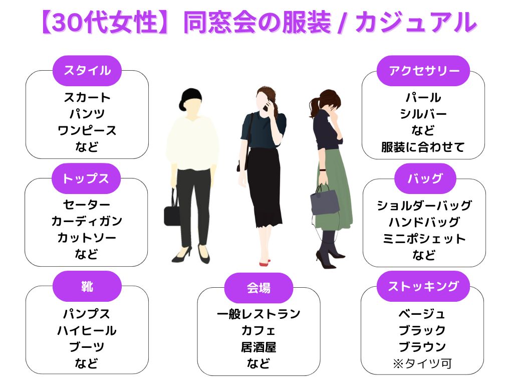 30代になって初めての同窓会。学生時代の友人たちとの再会は楽しみだけれど、「みんなどんな格好で来るんだろう」「年相応の装いって?」と迷っていませんか?30代は、キャリアも私生活も充実してくる年代。