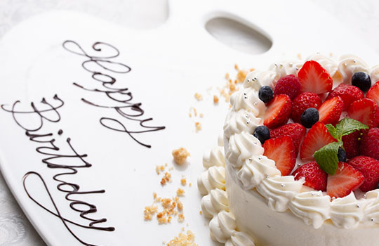 懐石イタリアンコースで記憶に残るアニバーサリーを。お祝いには欠かせないスパークリングワインやパティシエ特製のホールケーキと共に。